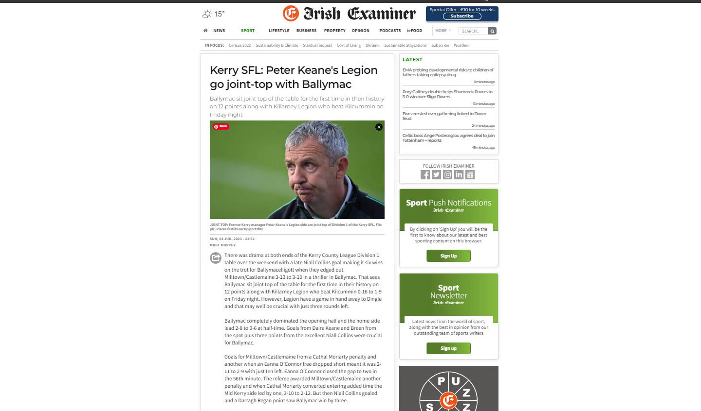 Ballymacelligott: 3-13 Milltown/Castlemaine 3-10