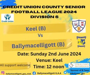 The Senior B team travelled to Keel on Sunday morning and came home with a win. The game was one-sided, with Ballymac dominant and leading from the first score of the game.