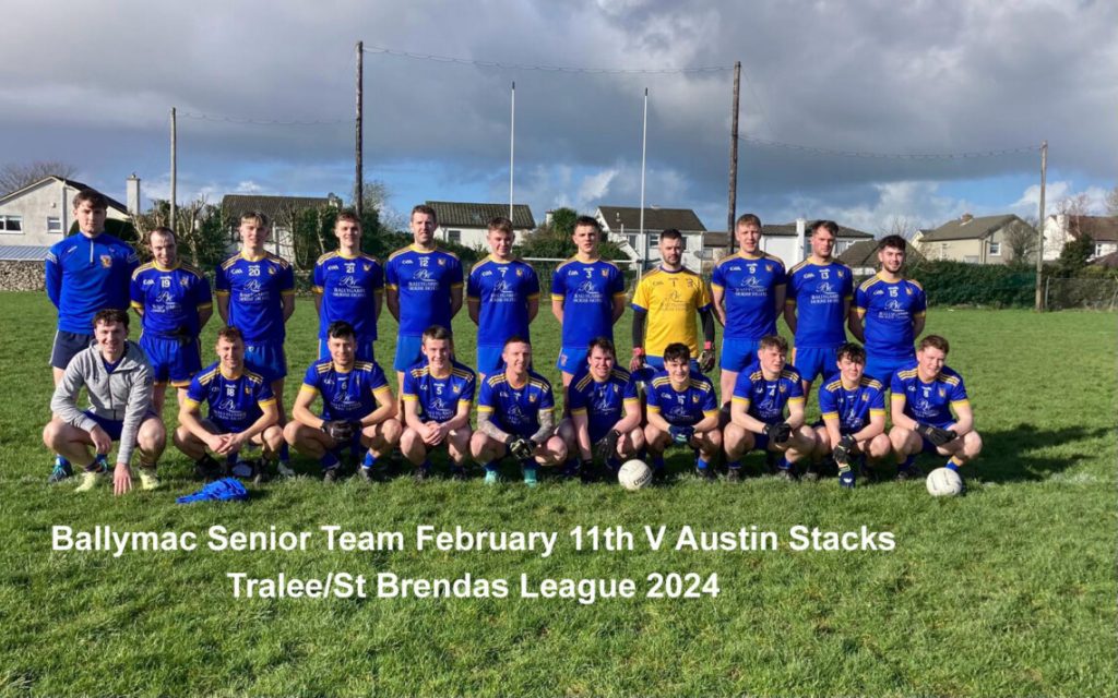 Thanks to the Tralee/St Brendan’s Board, club players were allowed to play their first competitive game of the 2024 season on Sunday. Ballymac saw two of last year’s minors don the senior jersey for the first time: Cathal White and Shane Gilroy. Both players played with distinction and we wish them both years of success in the Blue and Gold.