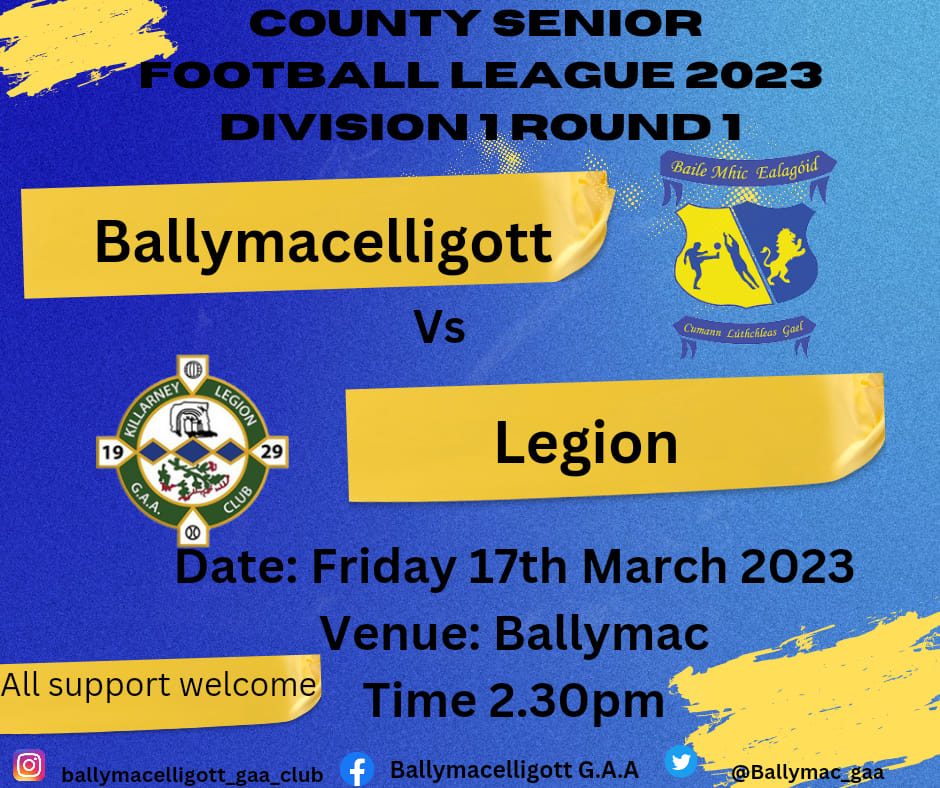 Credit Union Senior League 2023: Division 1 Ballymac V Killarney Legion