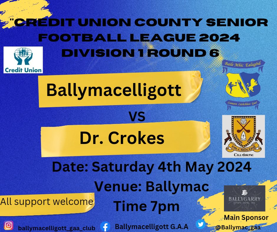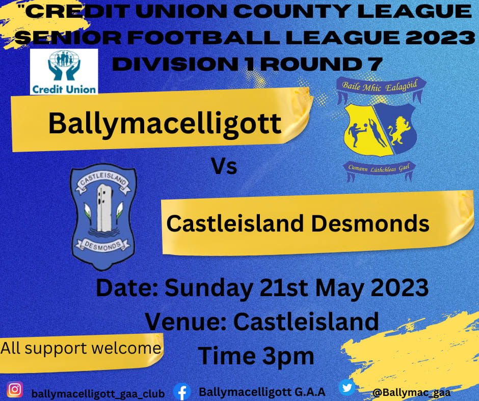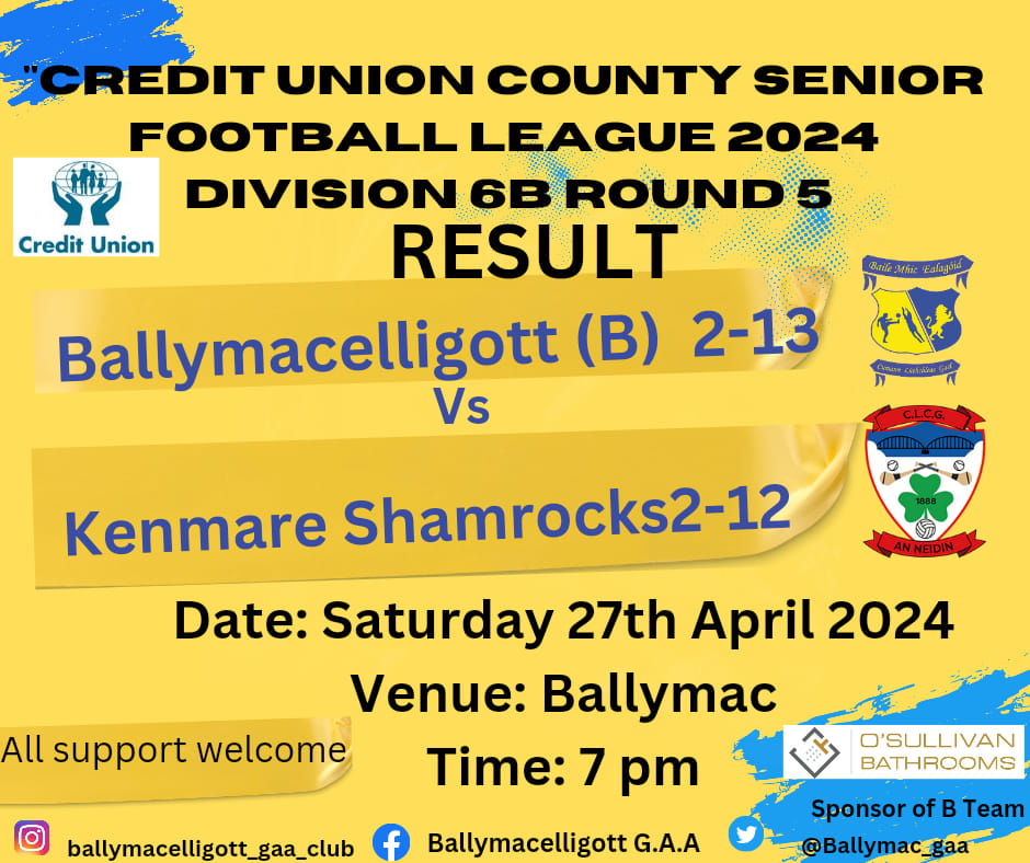 Senior Football League Division 1 Round 8 Ballymacelligott: 3-13 Milltown/Castlemaine 3-10 (Sunday 4th June in Ballymac) Ballymac sits joint first on the Credit Union Senior Football League Div 1 table this week. This feat was never achieved before by a BallymacTeam and it is a credit to this squad of players and their work […]