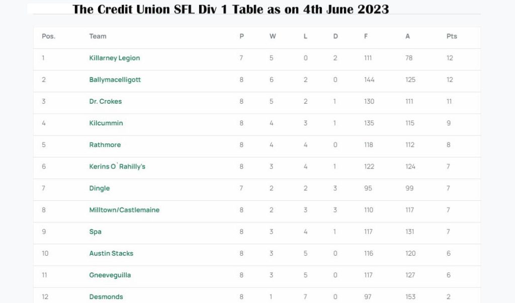 The Credit Union SFL Div1 Round 5: Dr Crokes V Ballymacelligott (30-04-23)