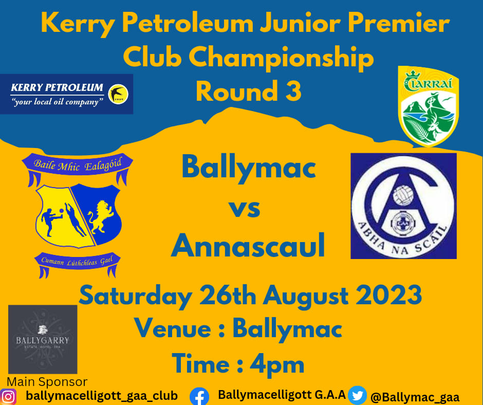 Kerry Petroleum Junior Premier Football Club Championship: Group B Round 3 @Ballymacelligott GAA Grounds. Ballymacelligott 3-11 Annascaul 1-13 Ballymacelligott and Annascaul came into this game with three points each. Sixteen minutes into the first half, Michéal Reidy intercepted a ball in the half-back line, an Annascaul move to up the pace after a Donal Daly […]