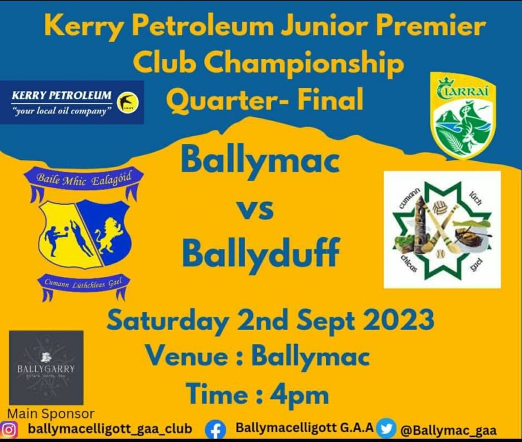 Kerry Petroleum Junior Premier Club Championship: Quarter Final Ballymacelligott V Ballyduff