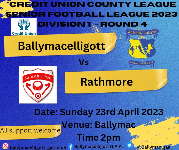 | Sunday 20th April @2pm | 4 | Ballymacelligott | Clounmacon | ||