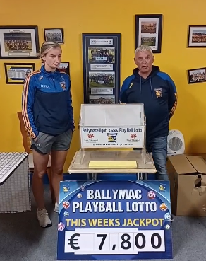 Ballymac GAA Lotto Jackpot is €6200 on 12th May